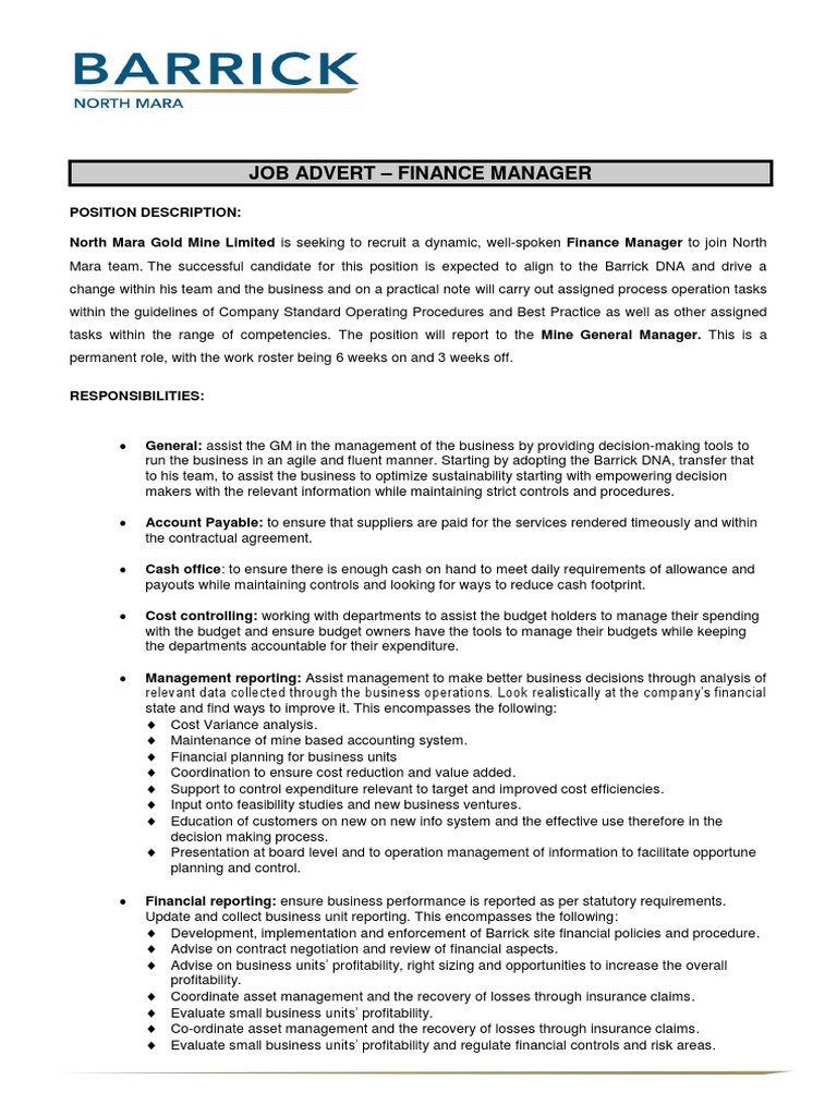 From large corporations to small retail stores, general managers play a key role in you'll have proven experience overseeing operations, and potentially human resources, finance, and. Use this general manager job description to find people who can lead your business operations and help your company thrive. .finance manager position, read our sample job description below and revise it to meet your if you are a job seeker looking for a finance manager position, use our sample job description below to see finance manager. This is a senior position. A finance manager distributes the financial resources of a company, is responsible for the budget planning, and supports the executive management team by offering.